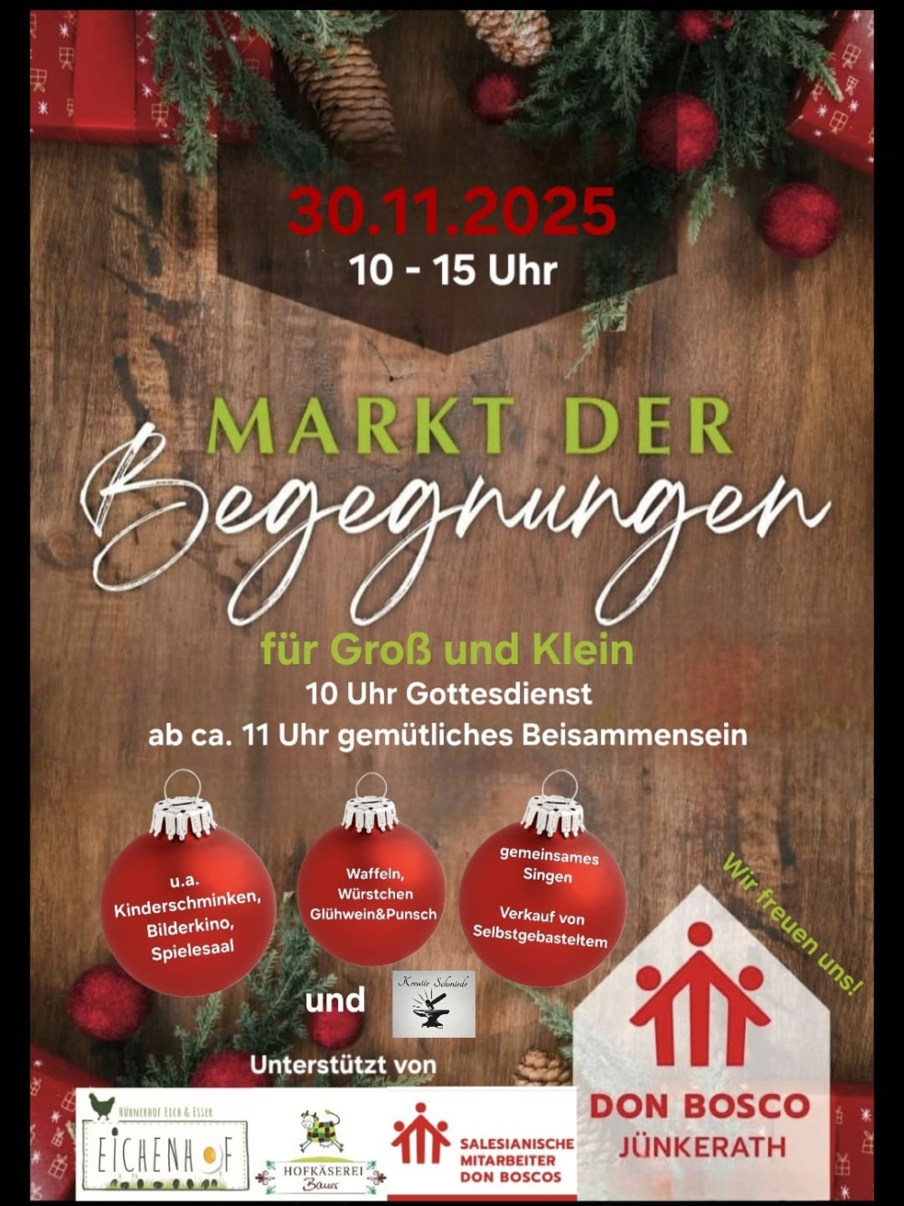 Nicht mehr lange, dann startet die gemütlichste Zeit des Jahres - es wird dunkler. Dann sind es kleine Lichter, die Herz und Stimmung aufhellen. Ein besonderer Start in die Jahreszeit findet am Sonntag vor dem Ersten Advent statt: Am 30. November ist bei Don Bosco Jünkerath der Markt der Begegnungen.